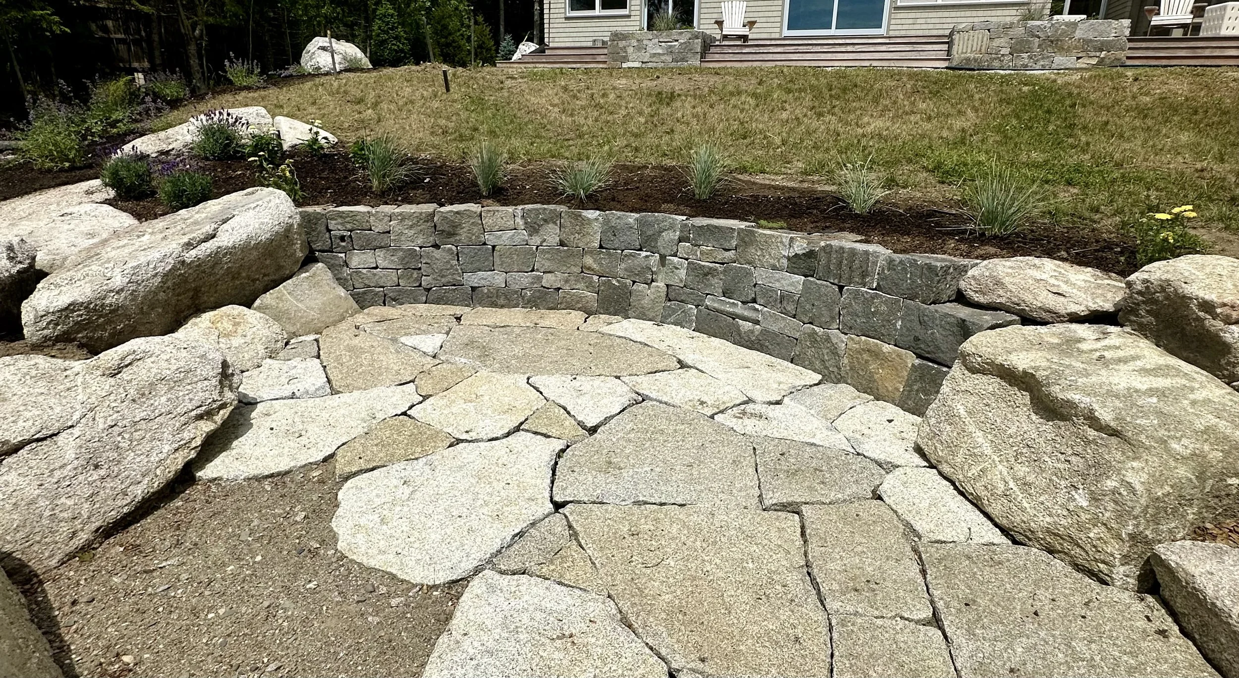 Dry stone walling is a traditional building technique where stones are fitted together without mortar. The weight and friction of properly placed stones create stable, durable structures that can last for centuries. This approach is particularly well-suited to Maine's climate, where mortared walls often crack from freeze-thaw cycles. The result: walls that are both functional and beautiful. Below are examples of residential dry stone walls across coastal Maine.