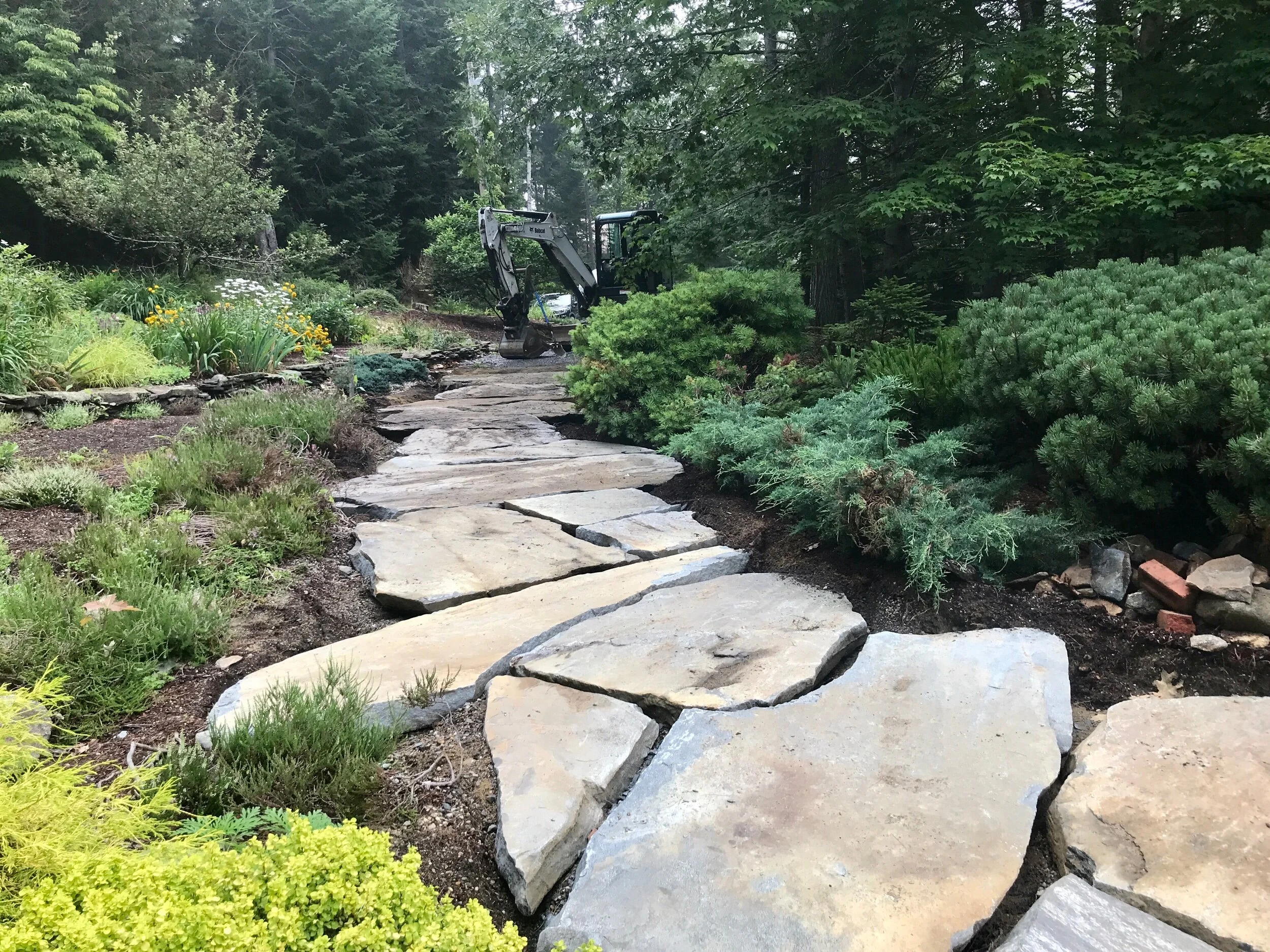 Natural stone walkways and patios for Maine homes and gardens.