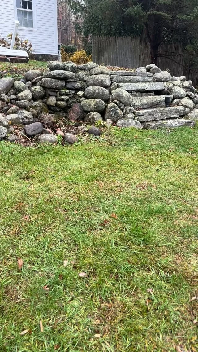 These steps will lead to a set of recently completed steps made from the same antique granite